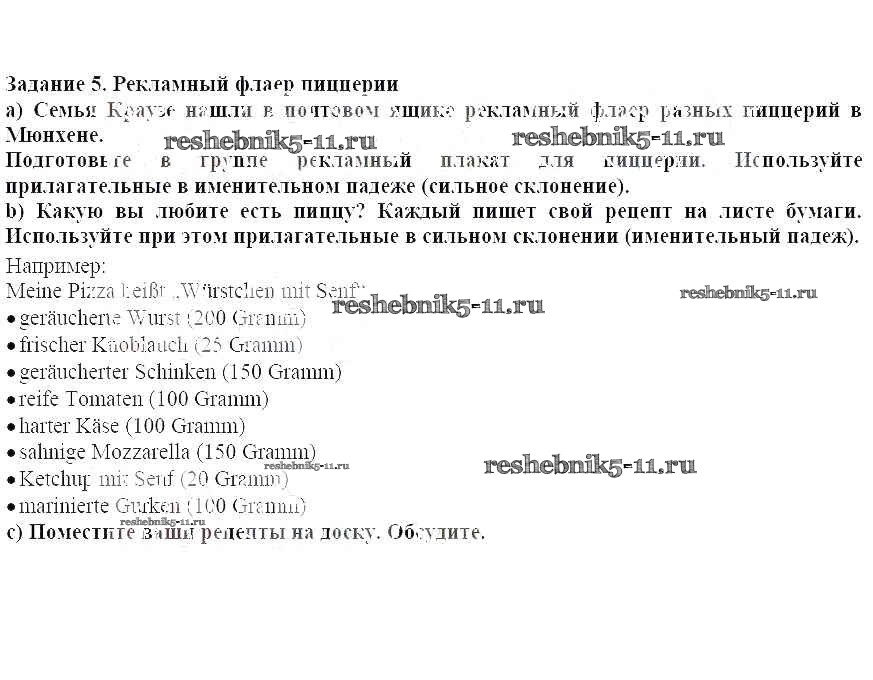 Готовая домашняя работа с ответами по Немецкому языку за 8 класс Радченко, Конго, Гертнер, Карелин Учебник Wunderkinder Plus Углубленный уровень Просвещение 2019 ФГОС - Глава 2. Вкусная еда. Блошиный рынок 5