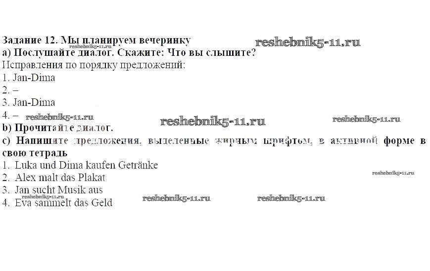 Готовая домашняя работа с ответами по Немецкому языку за 8 класс Радченко, Конго, Гертнер, Карелин Учебник Wunderkinder Plus Углубленный уровень Просвещение 2019 ФГОС - Глава 7. Школьная вечеринка 12