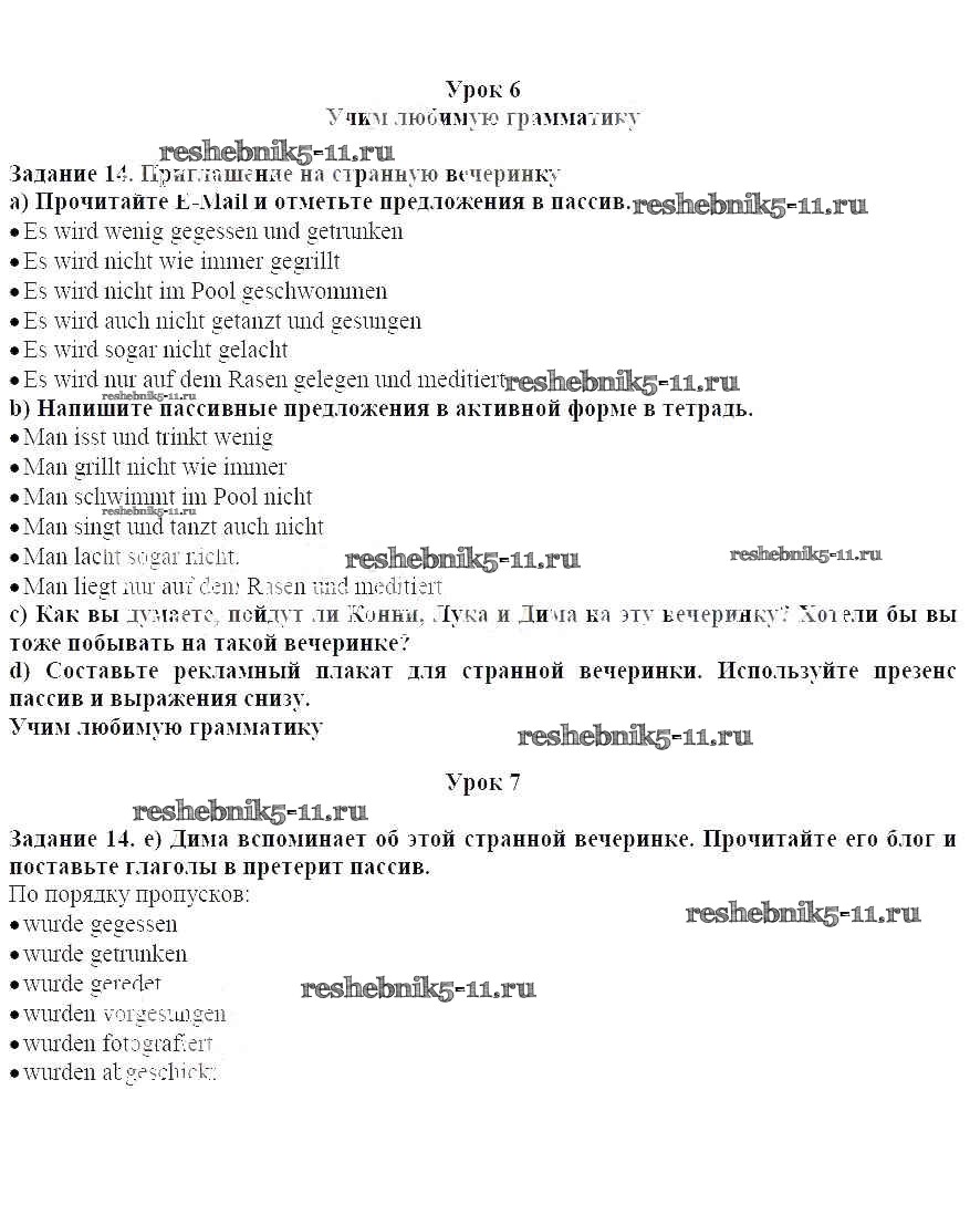 Готовая домашняя работа с ответами по Немецкому языку за 8 класс Радченко, Конго, Гертнер, Карелин Учебник Wunderkinder Plus Углубленный уровень Просвещение 2019 ФГОС - Глава 7. Школьная вечеринка 14