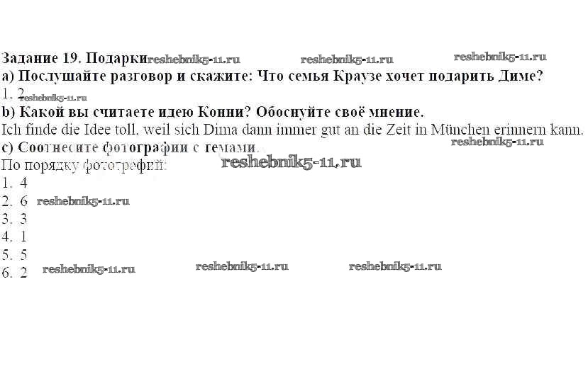 Готовая домашняя работа с ответами по Немецкому языку за 8 класс Радченко, Конго, Гертнер, Карелин Учебник Wunderkinder Plus Углубленный уровень Просвещение 2019 ФГОС - Глава 7. Школьная вечеринка 19