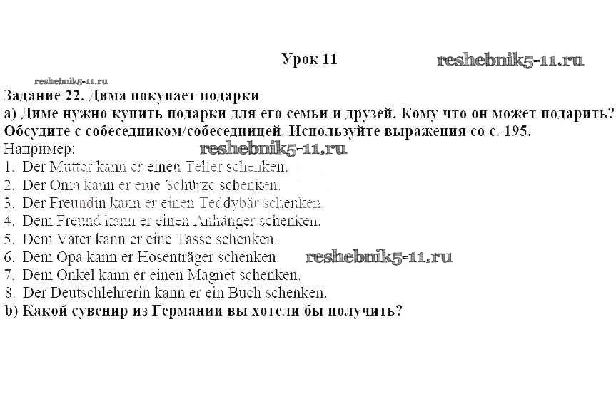 Готовая домашняя работа с ответами по Немецкому языку за 8 класс Радченко, Конго, Гертнер, Карелин Учебник Wunderkinder Plus Углубленный уровень Просвещение 2019 ФГОС - Глава 7. Школьная вечеринка 22