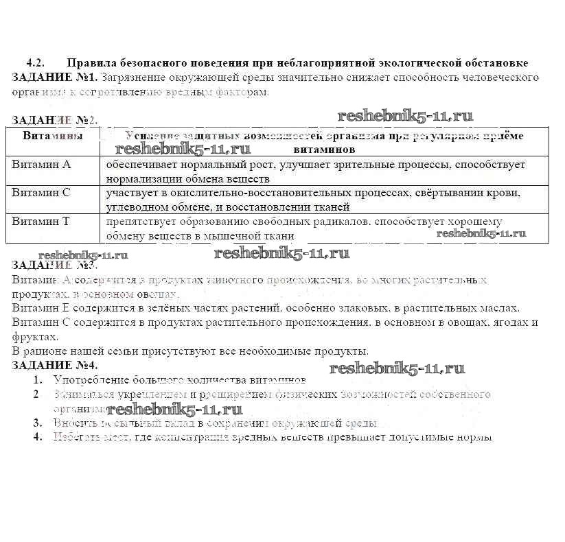 Готовая домашняя работа с ответами по ОБЖ за 8 класс Смирнов, Хренников, Маслов Рабочая тетрадь Просвещение 2013 ФГОС - Глава 4 4.2