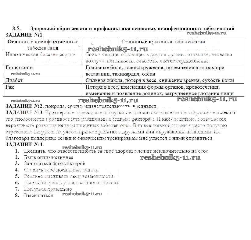 Готовая домашняя работа с ответами по ОБЖ за 8 класс Смирнов, Хренников, Маслов Рабочая тетрадь Просвещение 2013 ФГОС - Глава 8 8.5