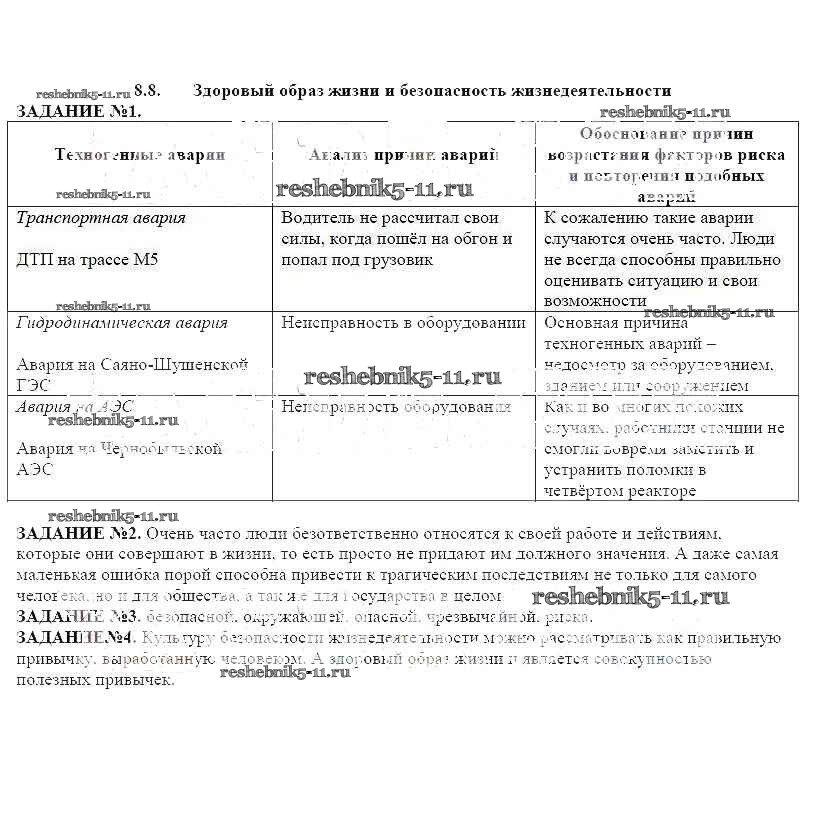 Готовая домашняя работа с ответами по ОБЖ за 8 класс Смирнов, Хренников, Маслов Рабочая тетрадь Просвещение 2013 ФГОС - Глава 8 8.8