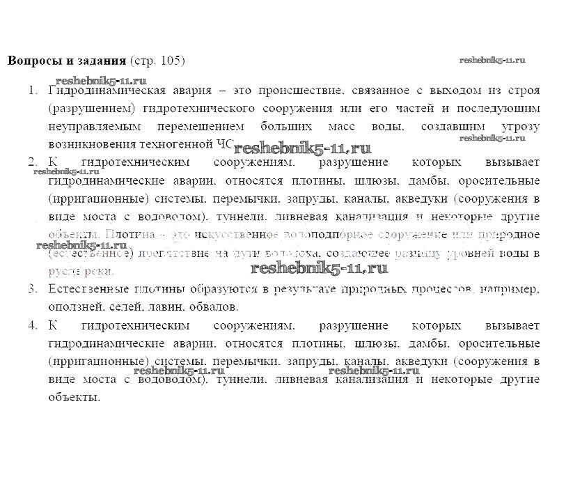 Готовая домашняя работа с ответами по ОБЖ за 8 класс Фролов, Юрьева, Шолох, Конейчук Учебник Дрофа 2019 ФГОС - Страницы учебника 105