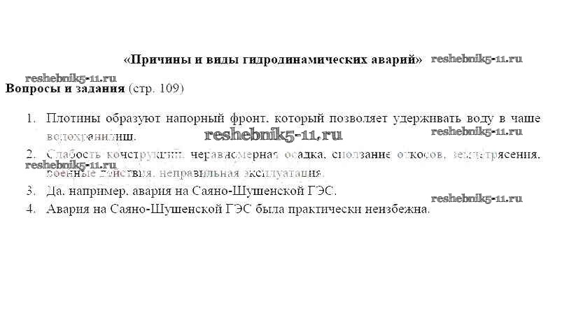 Готовая домашняя работа с ответами по ОБЖ за 8 класс Фролов, Юрьева, Шолох, Конейчук Учебник Дрофа 2019 ФГОС - Страницы учебника 109