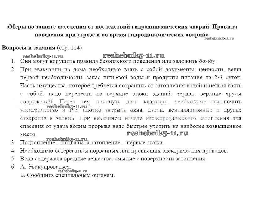 Готовая домашняя работа с ответами по ОБЖ за 8 класс Фролов, Юрьева, Шолох, Конейчук Учебник Дрофа 2019 ФГОС - Страницы учебника 114
