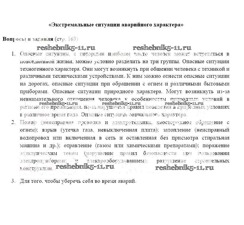Готовая домашняя работа с ответами по ОБЖ за 8 класс Фролов, Юрьева, Шолох, Конейчук Учебник Дрофа 2019 ФГОС - Страницы учебника 163