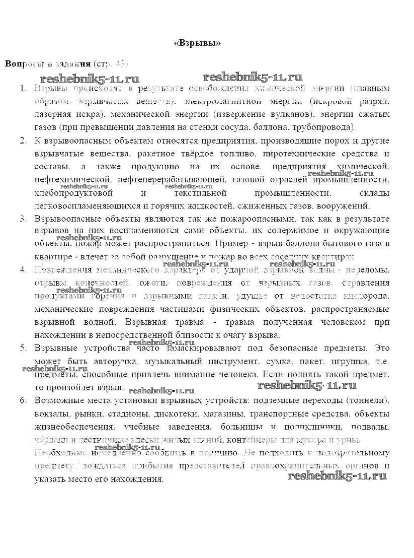 Готовая домашняя работа с ответами по ОБЖ за 8 класс Фролов, Юрьева, Шолох, Конейчук Учебник Дрофа 2019 ФГОС - Страницы учебника 43