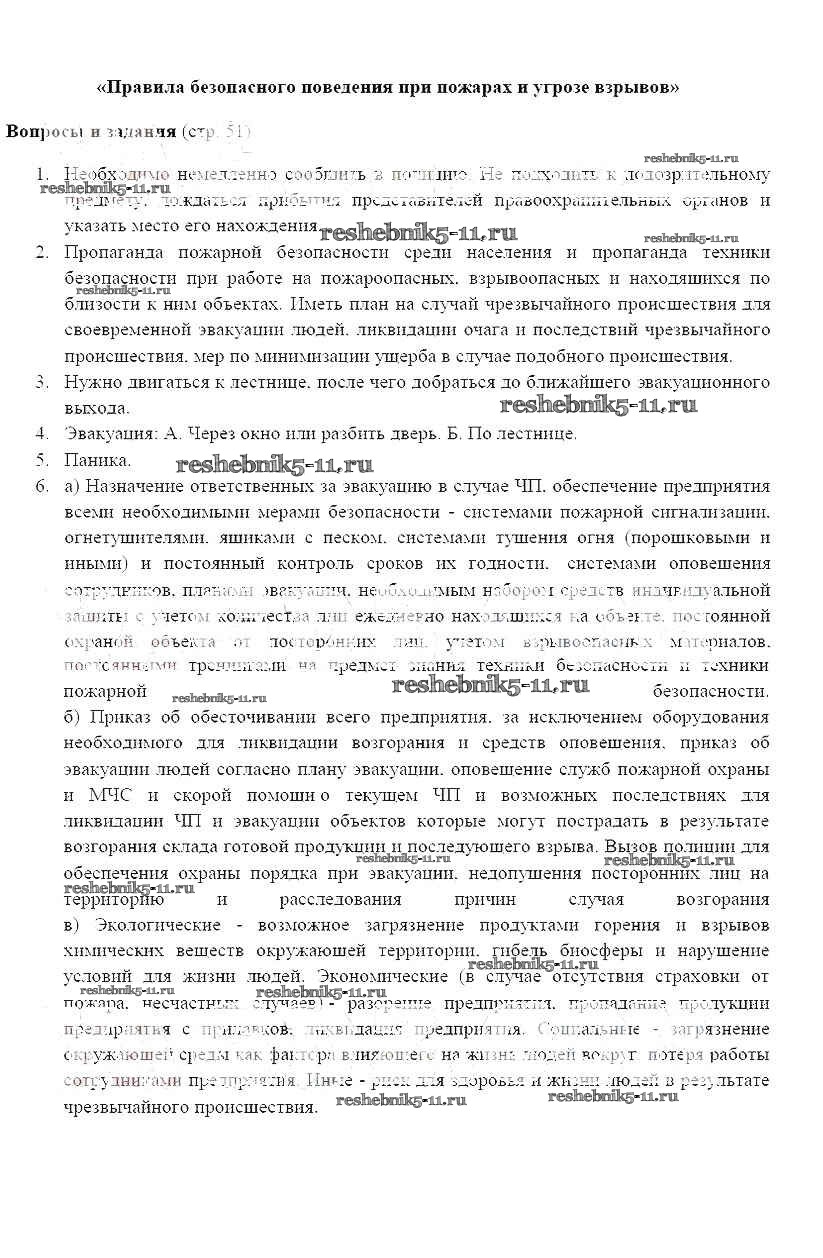 Готовая домашняя работа с ответами по ОБЖ за 8 класс Фролов, Юрьева, Шолох, Конейчук Учебник Дрофа 2019 ФГОС - Страницы учебника 51