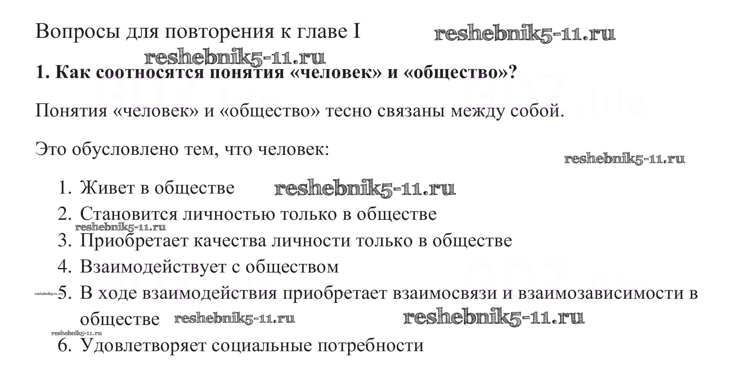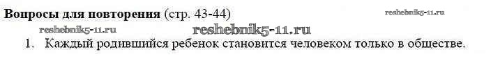 Готовая домашняя работа с ответами по Обществознанию за 8 класс Боголюбов, Городецкая, Кинкулькин, Иванова, Матвеев, Котова, Рутковская, Лазебникова Учебник Академический школьный учебник Просвещение 2014 ФГОС - Вопросы для повторения страница 43 1