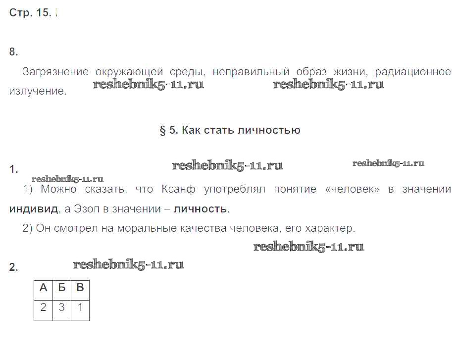 Готовая домашняя работа с ответами по Обществознанию за 8 класс Котова, Лискова Рабочая тетрадь Просвещение 2017 ФГОС - Глава 1. Личность и общество стр.15