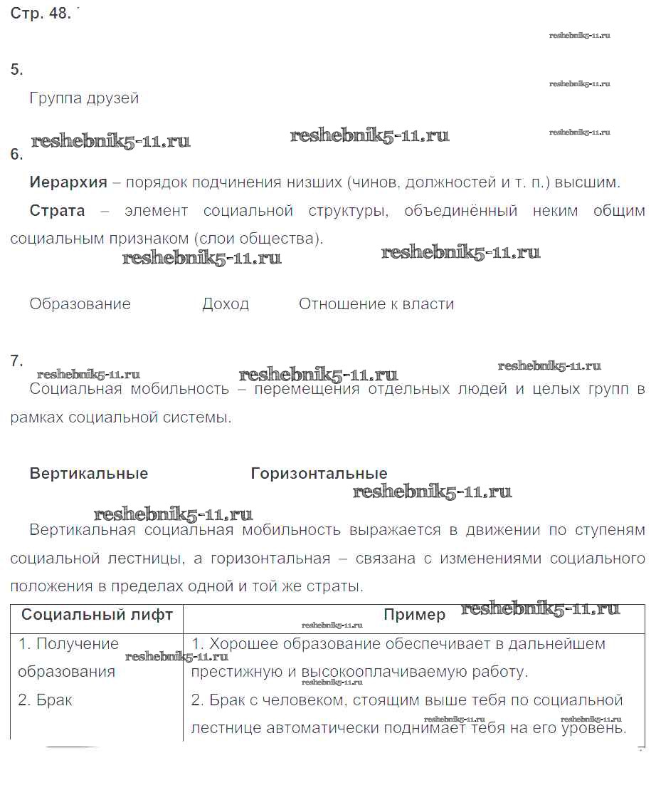Готовая домашняя работа с ответами по Обществознанию за 8 класс Котова, Лискова Рабочая тетрадь Просвещение 2017 ФГОС - Глава 3. Социальная сфера стр.48