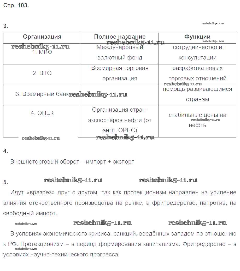 Готовая домашняя работа с ответами по Обществознанию за 8 класс Котова, Лискова Рабочая тетрадь Просвещение 2017 ФГОС - Глава 4. Экономика стр.103