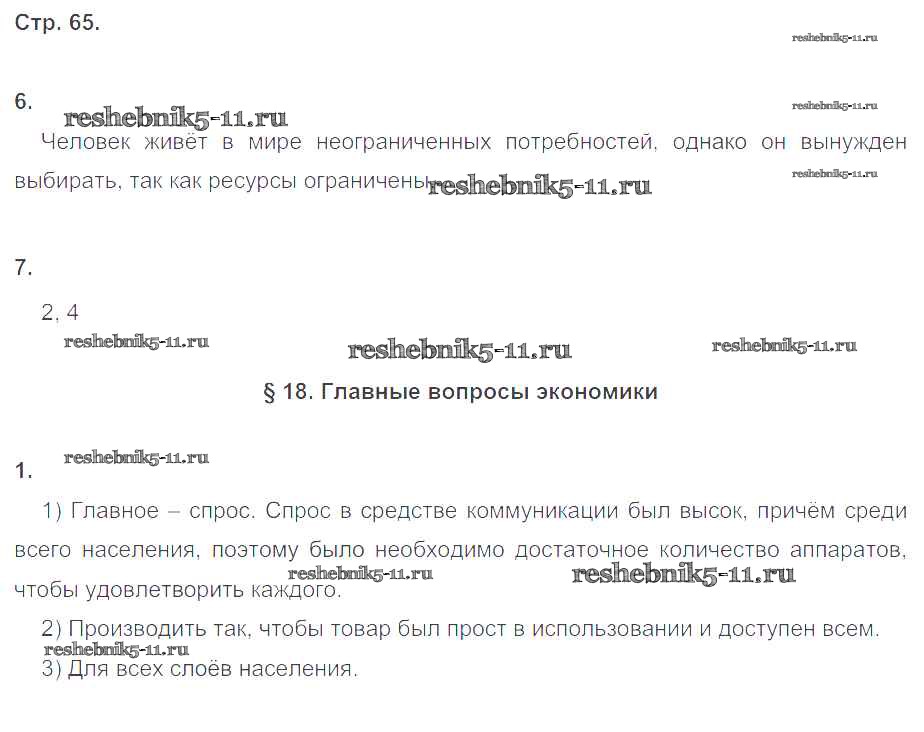 Обществознание за 8 класс Котова Рабочая тетрадь Просвещение глава 4. экономика стр.65