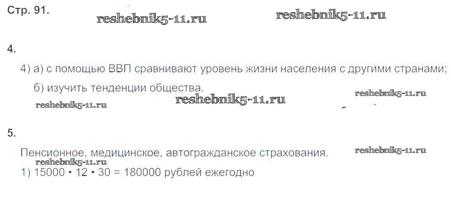 Готовая домашняя работа с ответами по Обществознанию за 8 класс Котова, Лискова Рабочая тетрадь Просвещение 2017 ФГОС - Глава 4. Экономика стр.91