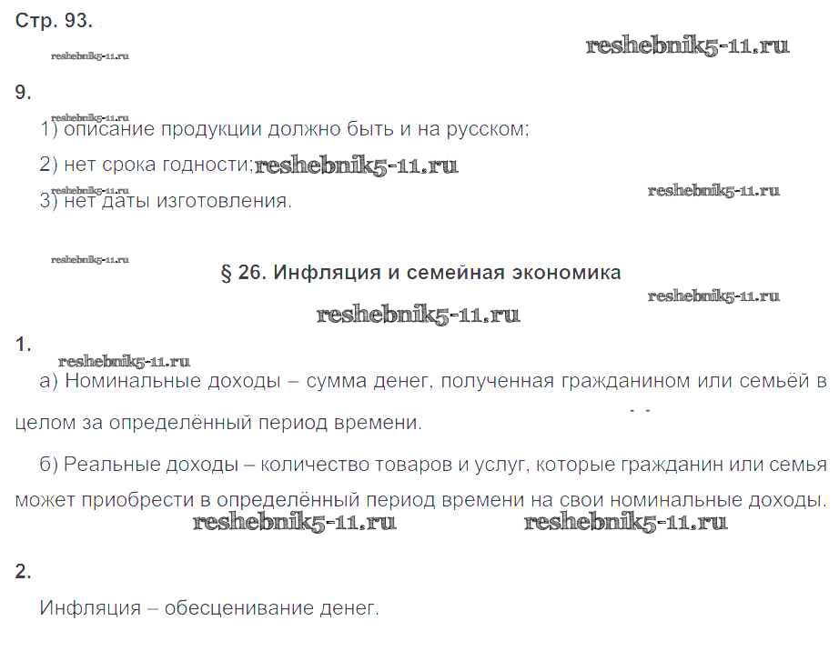 Обществознание за 8 класс Котова Рабочая тетрадь Просвещение глава 4. экономика стр.93