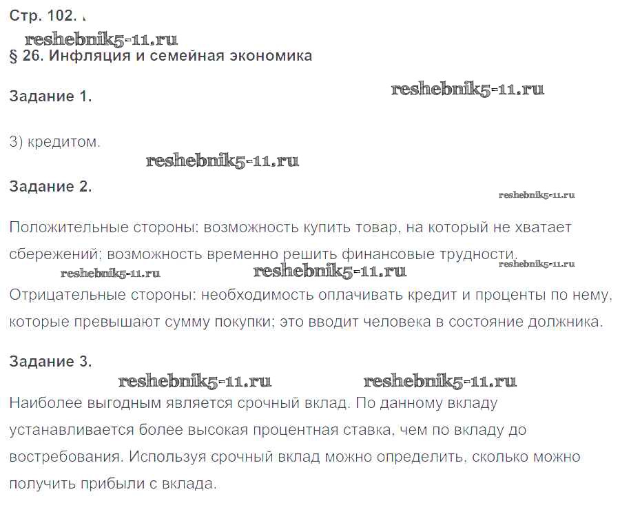 Готовая домашняя работа с ответами по Обществознанию за 8 класс Митькин Рабочая тетрадь УМК Экзамен 2017 ФГОС - Страницы 102
