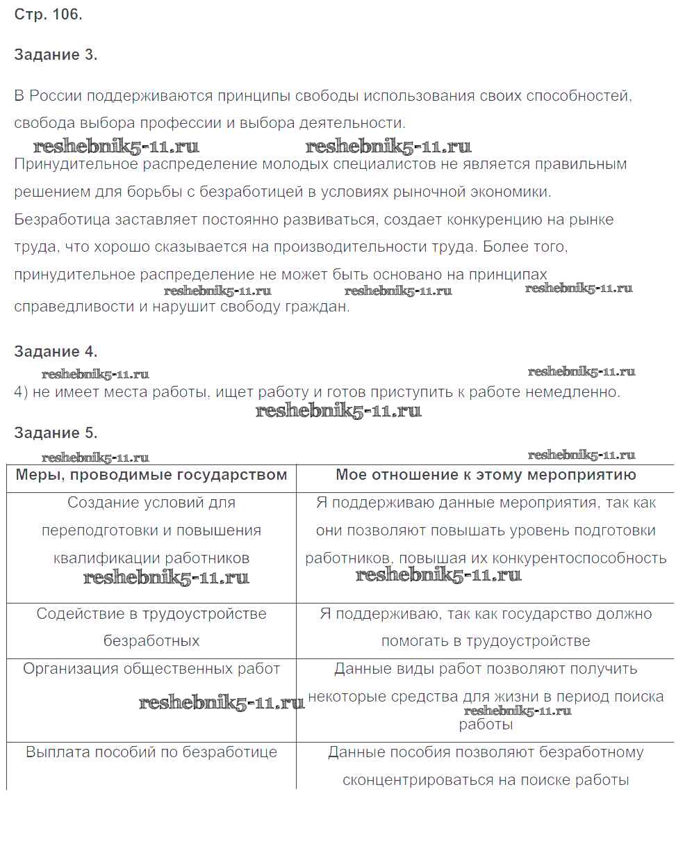 Готовая домашняя работа с ответами по Обществознанию за 8 класс Митькин Рабочая тетрадь УМК Экзамен 2017 ФГОС - Страницы 106