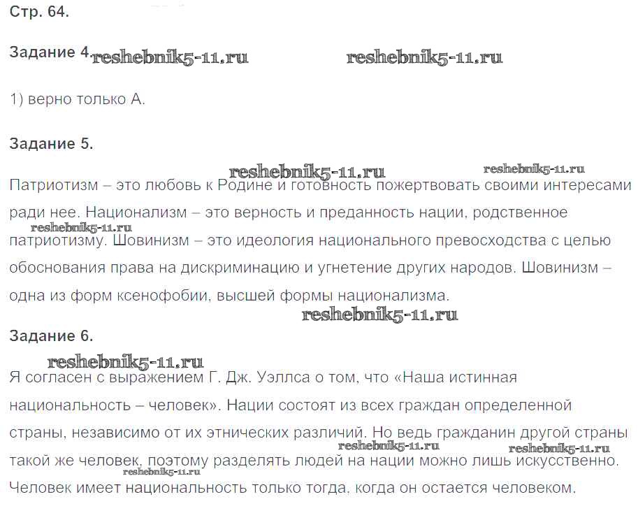 Готовая домашняя работа с ответами по Обществознанию за 8 класс Митькин Рабочая тетрадь УМК Экзамен 2017 ФГОС - Страницы 64