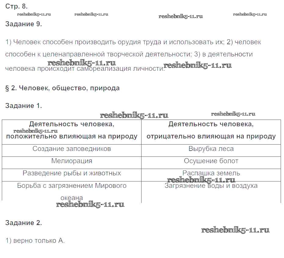 Готовая домашняя работа с ответами по Обществознанию за 8 класс Митькин Рабочая тетрадь УМК Экзамен 2017 ФГОС - Страницы 8
