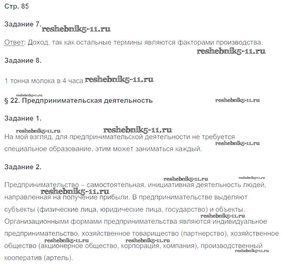 Готовая домашняя работа с ответами по Обществознанию за 8 класс Митькин Рабочая тетрадь УМК Экзамен 2017 ФГОС - Страницы 85