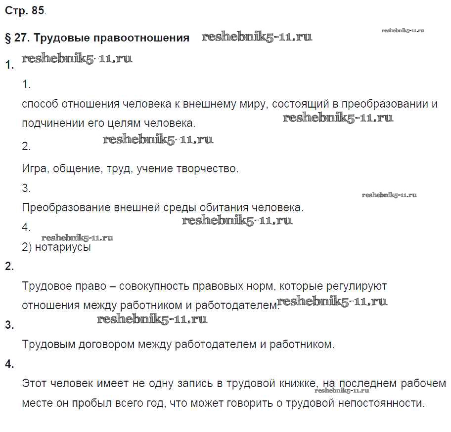 Готовая домашняя работа с ответами по Обществознанию за 8 класс Соболева, Воронцов Рабочая тетрадь Алгоритм успеха Вентана-граф 2018 ФГОС - Страницы тетради 85