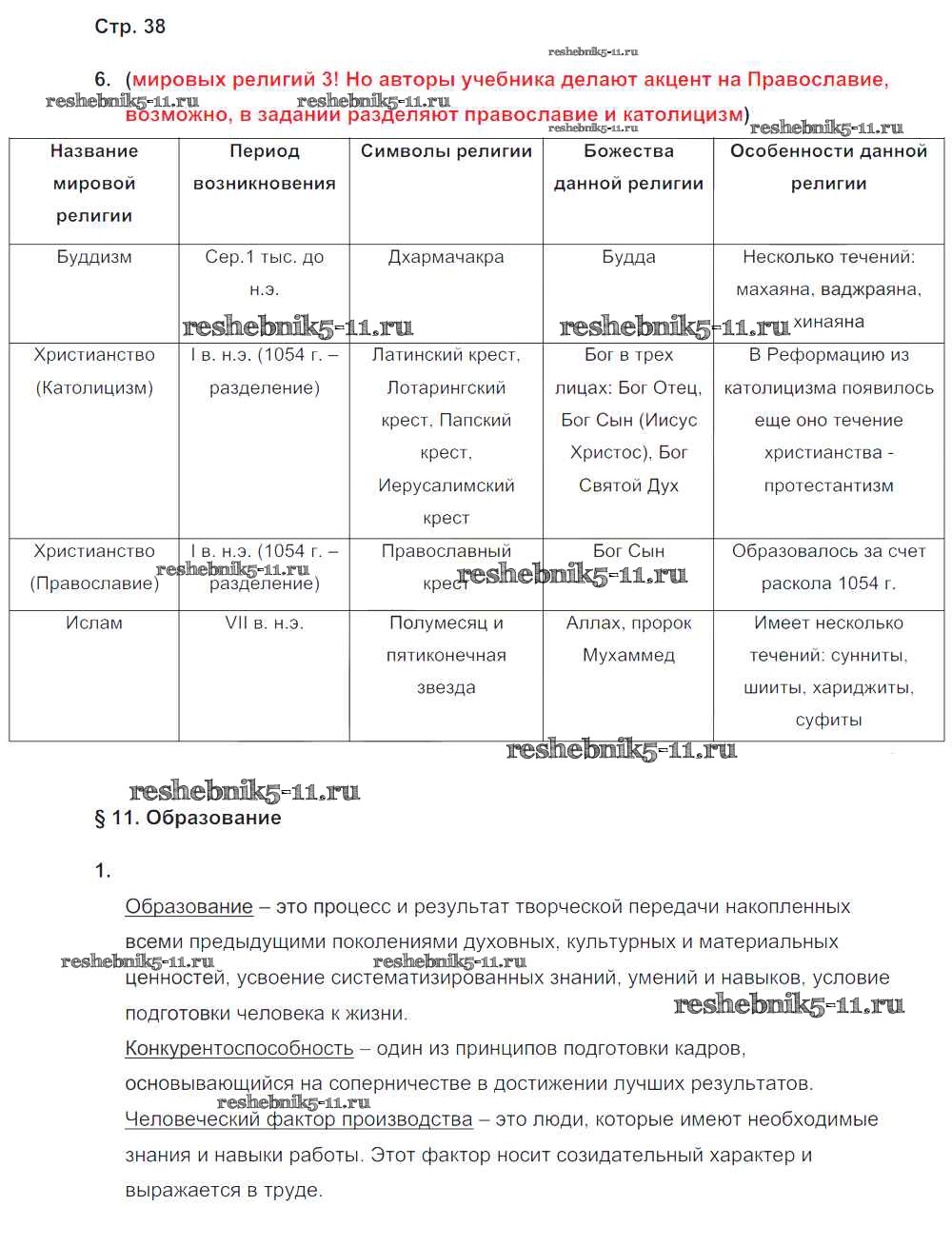 Готовая домашняя работа с ответами по Обществознанию за 8 класс Федорова Рабочая тетрадь Вертикаль Дрофа 2019 ФГОС - Страницы тетради 38