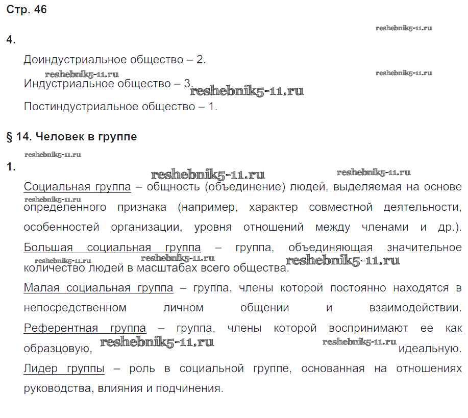 Готовая домашняя работа с ответами по Обществознанию за 8 класс Федорова Рабочая тетрадь Вертикаль Дрофа 2019 ФГОС - Страницы тетради 46