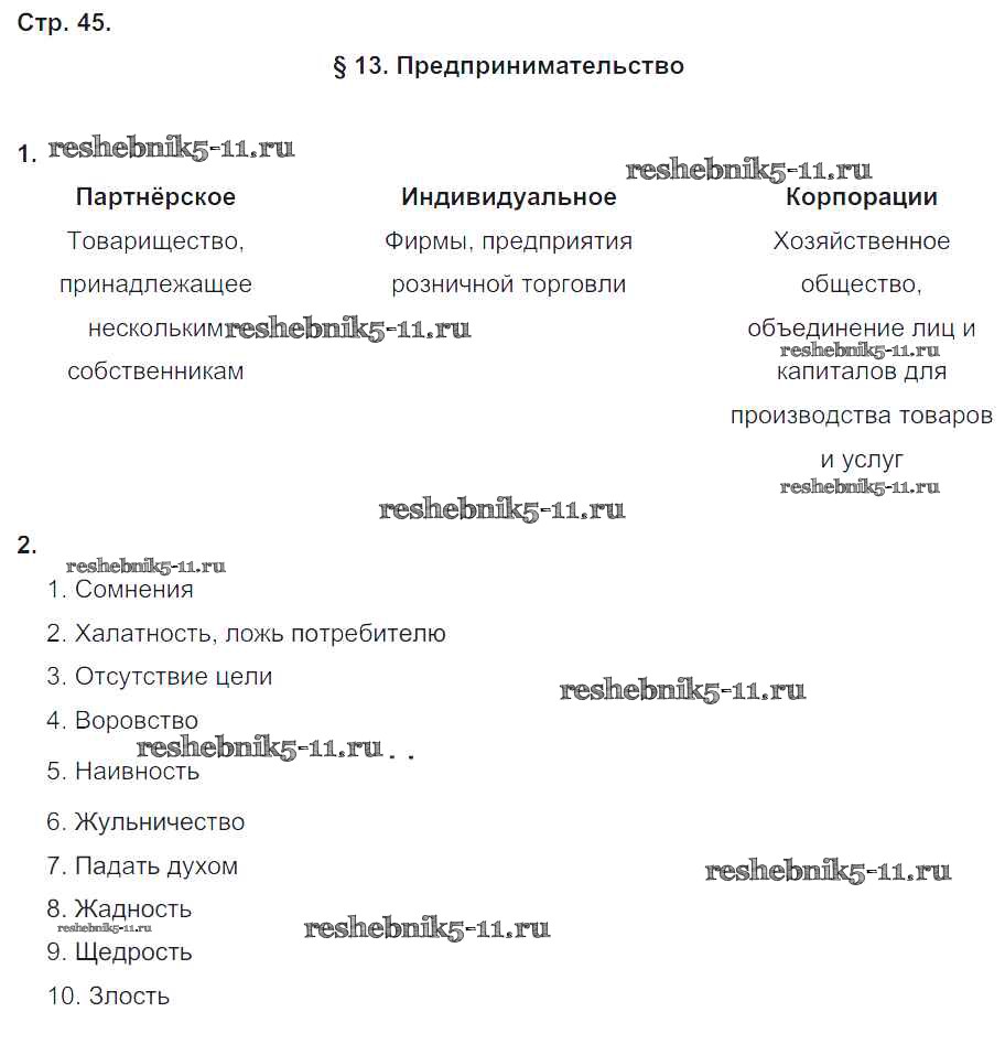 Готовая домашняя работа с ответами по Обществознанию за 8 класс Хромова Рабочая тетрадь Русское слово 2015 ФГОС - Страницы 45