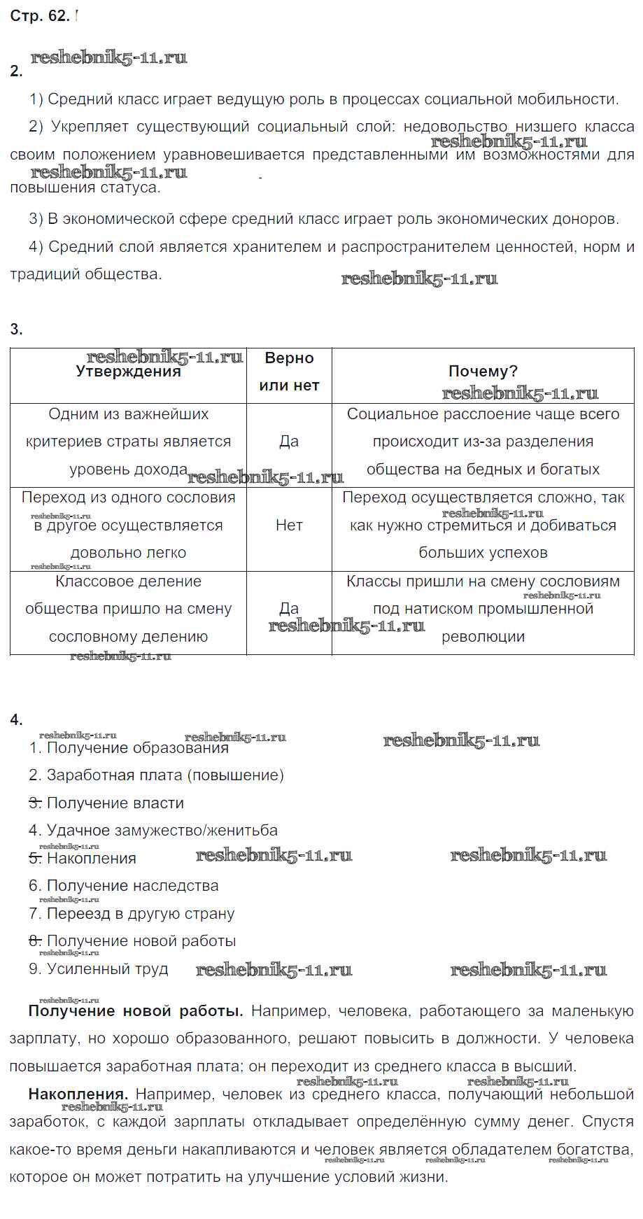 Готовая домашняя работа с ответами по Обществознанию за 8 класс Хромова Рабочая тетрадь Русское слово 2015 ФГОС - Страницы 62