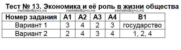 Тест №13. Экономика и её роль в жизни общества