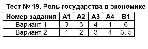Готовая домашняя работа с ответами по Обществознанию за 8 класс Поздеев Контрольно-измерительные материалы (КИМ) ВАКО 2017 ФГОС - Тесты Тест №19. Роль государства в экономике