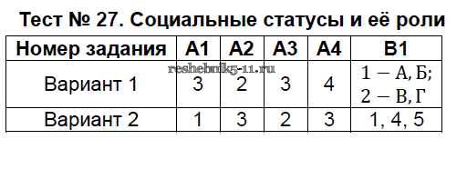 Решебник / тест / тест №27. Социальные статусы и её роли