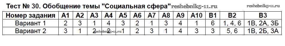 Готовая домашняя работа с ответами по Обществознанию за 8 класс Поздеев Контрольно-измерительные материалы (КИМ) ВАКО 2017 ФГОС - Тесты Тест №30. Обобщение темы - Социальная сфера