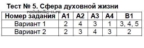 Готовая домашняя работа с ответами по Обществознанию за 8 класс Поздеев Контрольно-измерительные материалы (КИМ) ВАКО 2017 ФГОС - Тесты Тест №5. Сфера духовной жизни