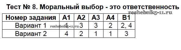 Готовая домашняя работа с ответами по Обществознанию за 8 класс Поздеев Контрольно-измерительные материалы (КИМ) ВАКО 2017 ФГОС - Тесты Тест №8. Моральный выбор - это ответственность