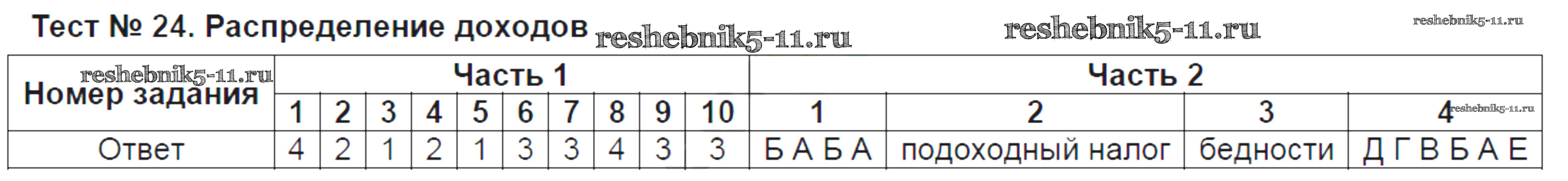 Готовая домашняя работа с ответами по Обществознанию за 8 класс Краюшкина Тесты УМК Экзамен 2017 ФГОС - Тесты Тест №24. Распределение доходов