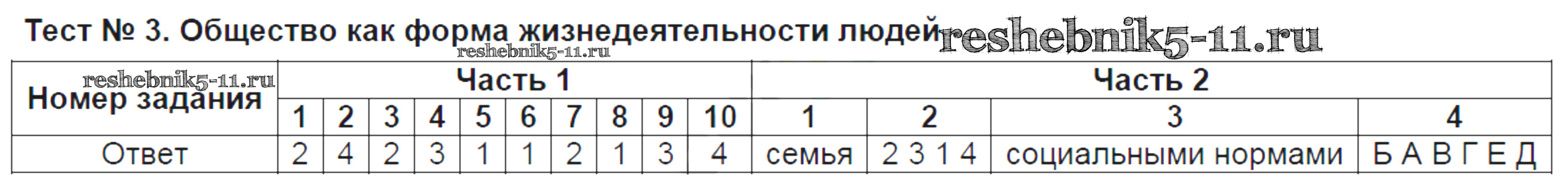 Готовая домашняя работа с ответами по Обществознанию за 8 класс Краюшкина Тесты УМК Экзамен 2017 ФГОС - Тесты Тест №3. Общество как форма жизнедеятельности людей
