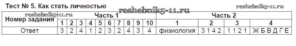 Готовая домашняя работа с ответами по Обществознанию за 8 класс Краюшкина Тесты УМК Экзамен 2017 ФГОС - Тесты Тест №5. Как стать личностью