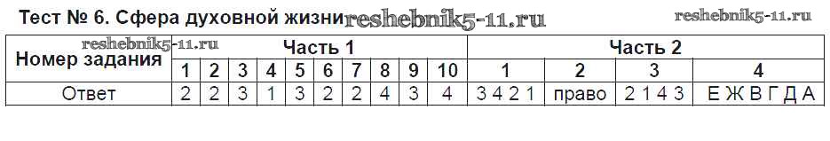Тест №6. Сфера духовной жизни
