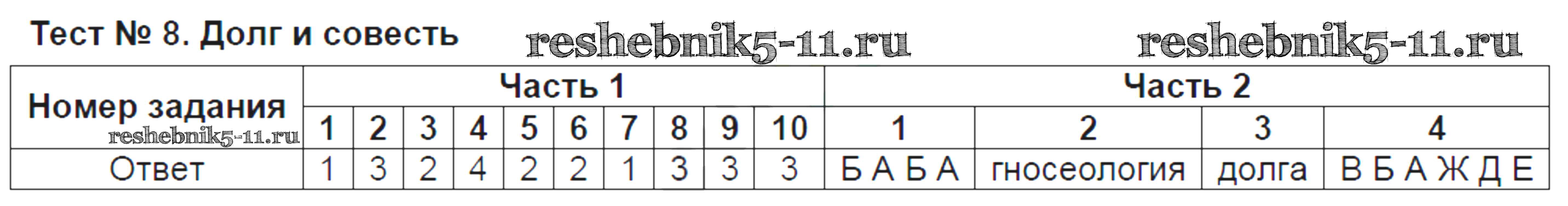 Готовая домашняя работа с ответами по Обществознанию за 8 класс Краюшкина Тесты УМК Экзамен 2017 ФГОС - Тесты Тест №8. Долг и совесть