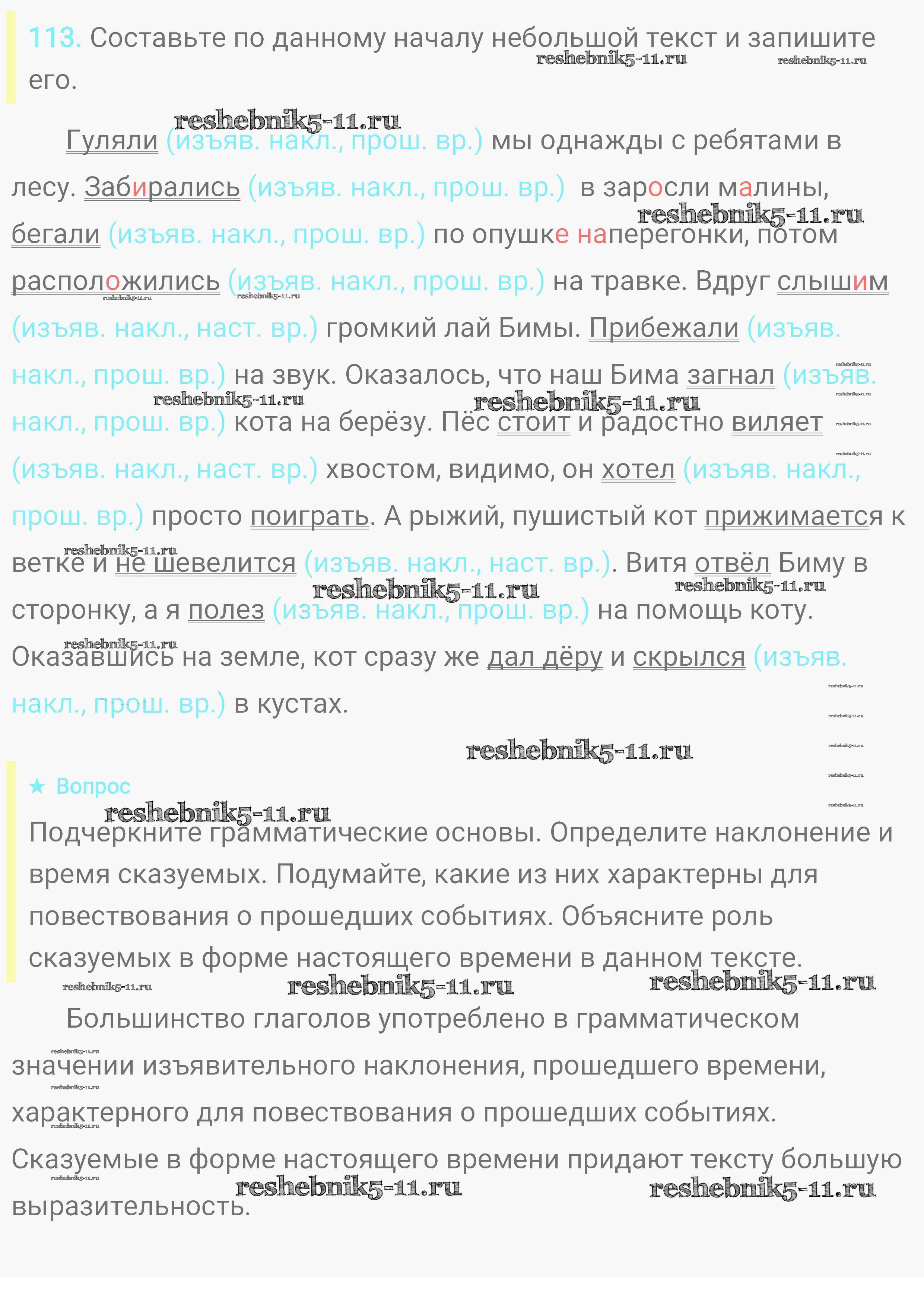 Готовая домашняя работа с ответами по Русскому языку за 8 класс Пичугов, Еремеева, Купалова, Леденева Практика Вертикаль Дрофа 2016 ФГОС - Упражнения 113