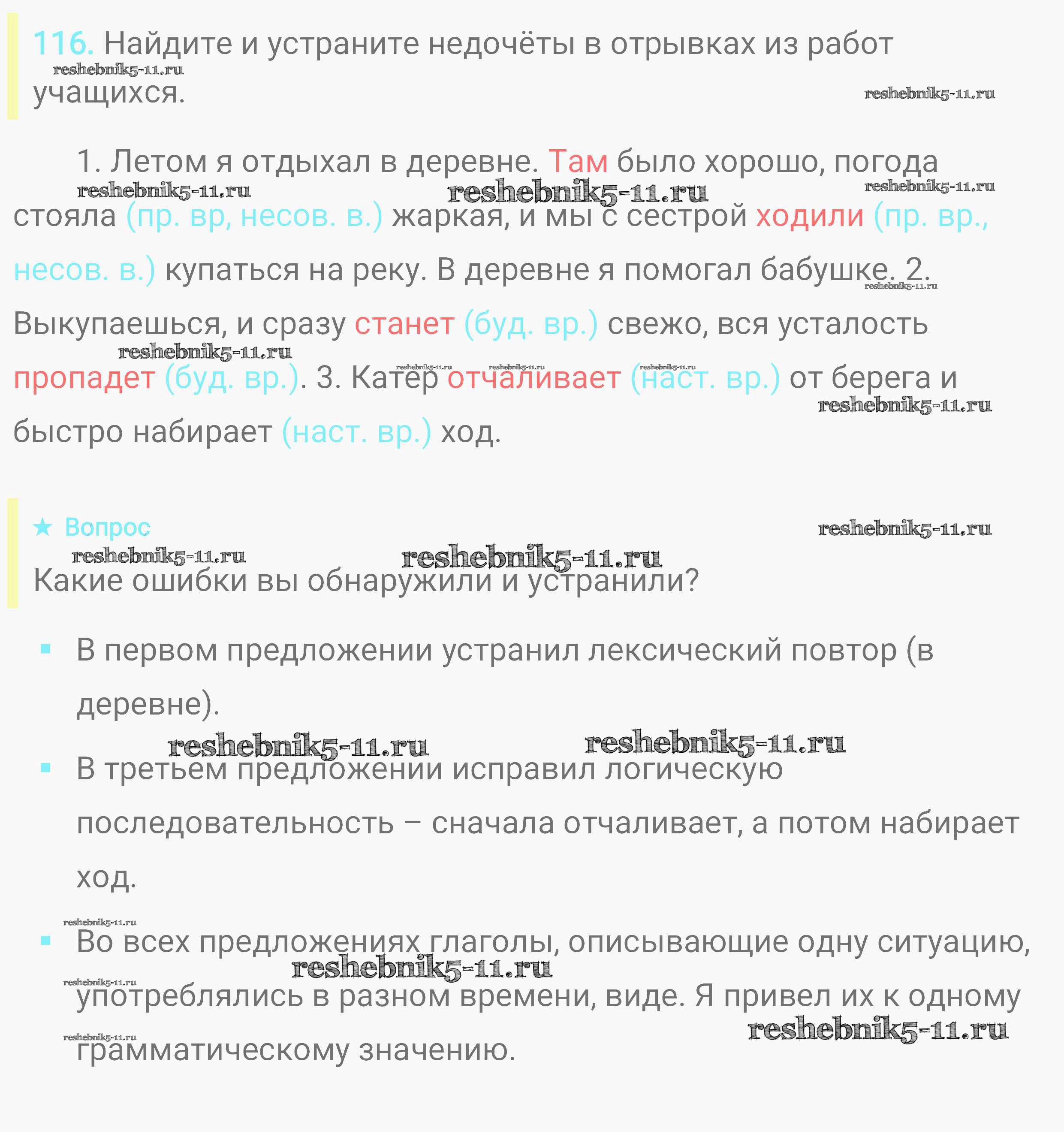 Готовая домашняя работа с ответами по Русскому языку за 8 класс Пичугов, Еремеева, Купалова, Леденева Практика Вертикаль Дрофа 2016 ФГОС - Упражнения 116