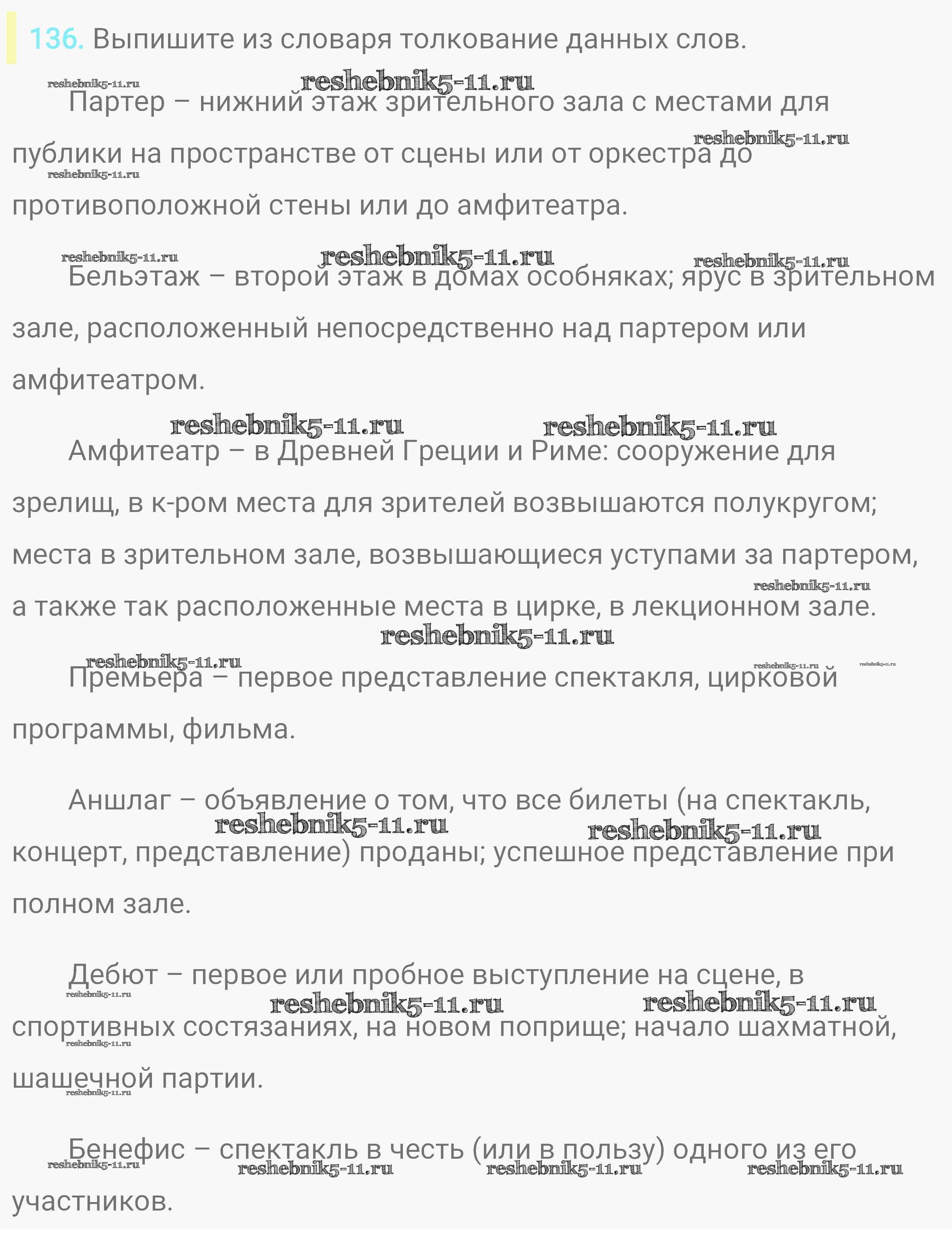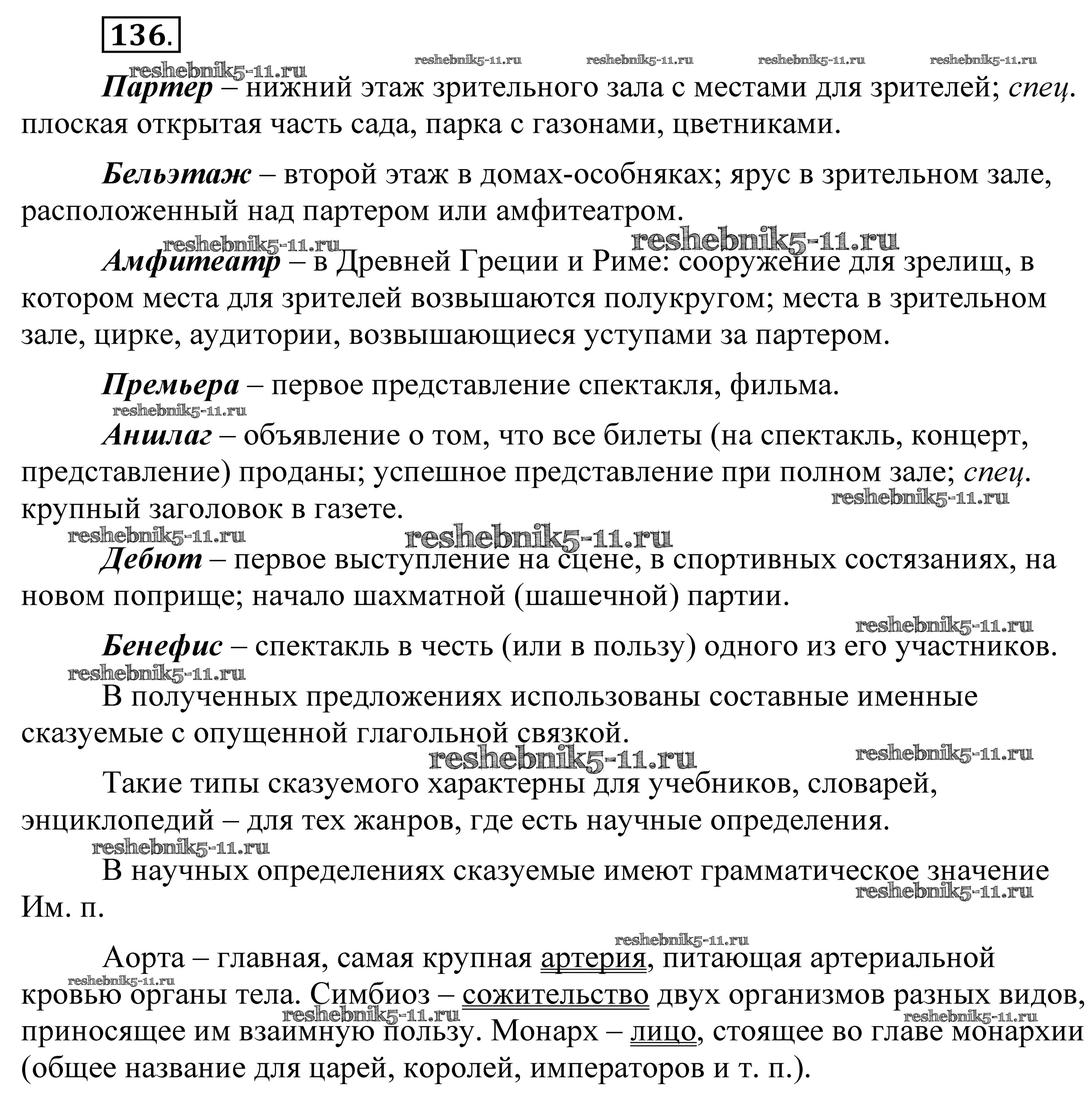 Готовая домашняя работа с ответами по Русскому языку за 8 класс Пичугов, Еремеева, Купалова, Леденева Практика Вертикаль Дрофа 2016 ФГОС - Упражнения 136