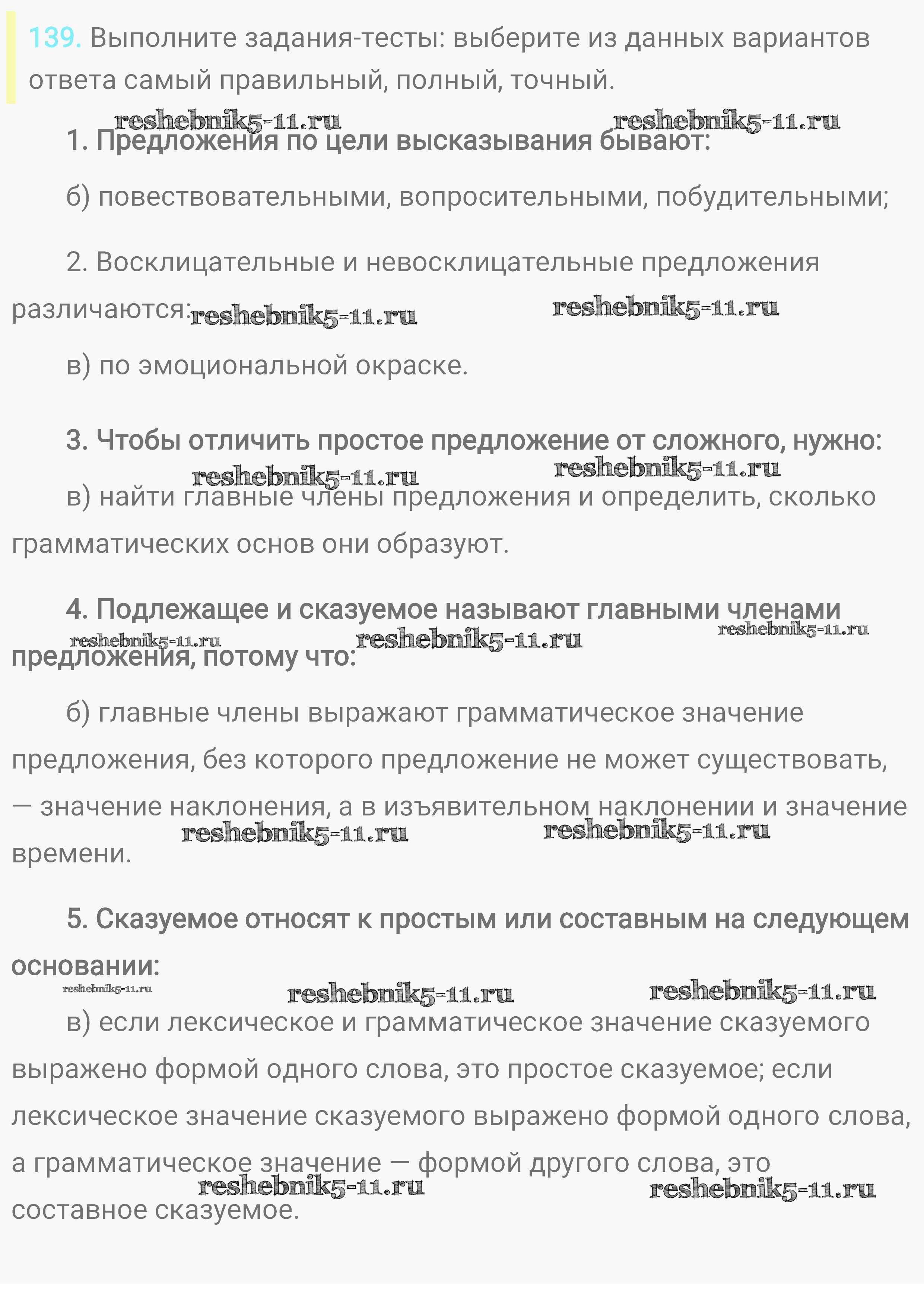 Готовая домашняя работа с ответами по Русскому языку за 8 класс Пичугов, Еремеева, Купалова, Леденева Практика Вертикаль Дрофа 2016 ФГОС - Упражнения 139