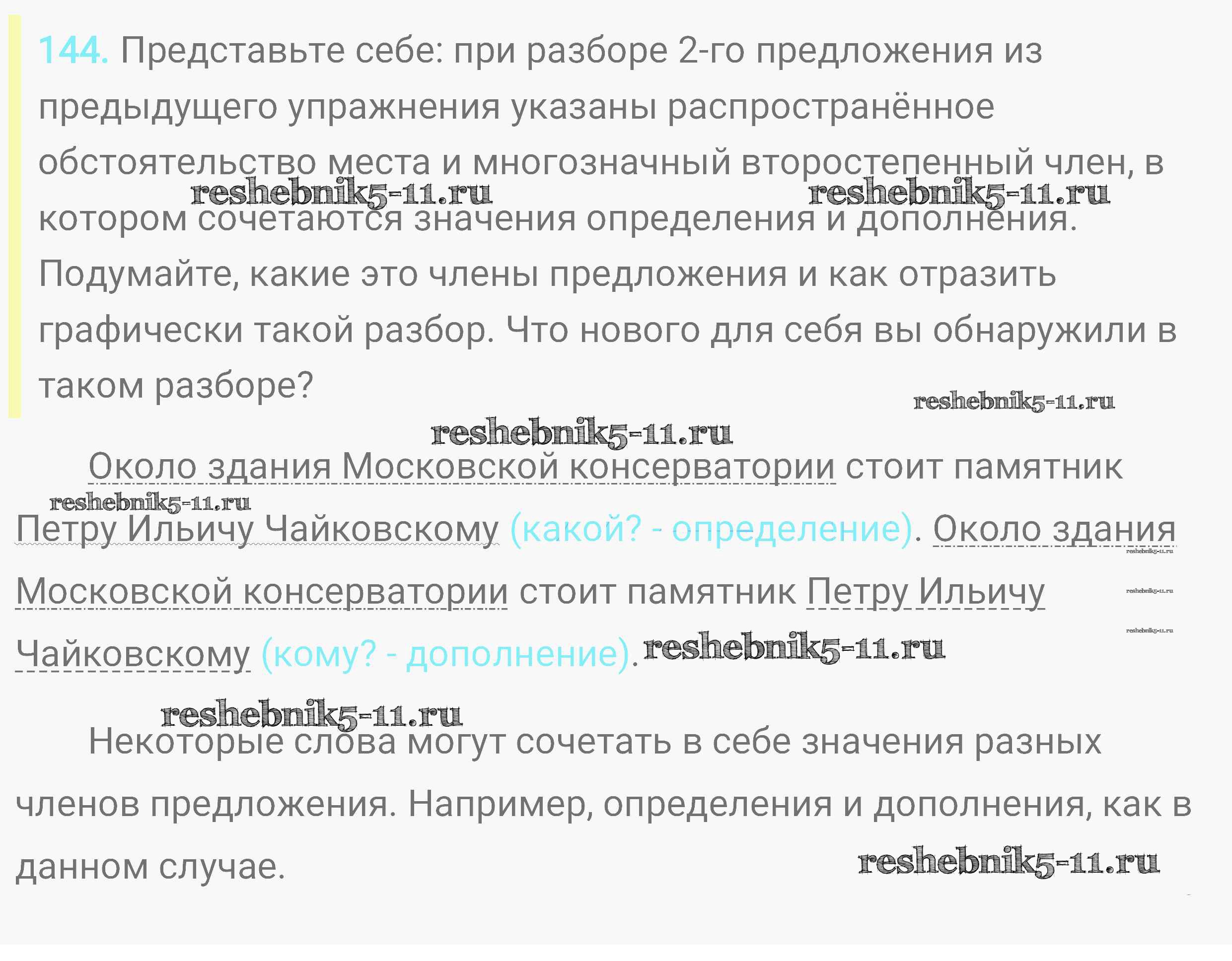 Готовая домашняя работа с ответами по Русскому языку за 8 класс Пичугов, Еремеева, Купалова, Леденева Практика Вертикаль Дрофа 2016 ФГОС - Упражнения 144