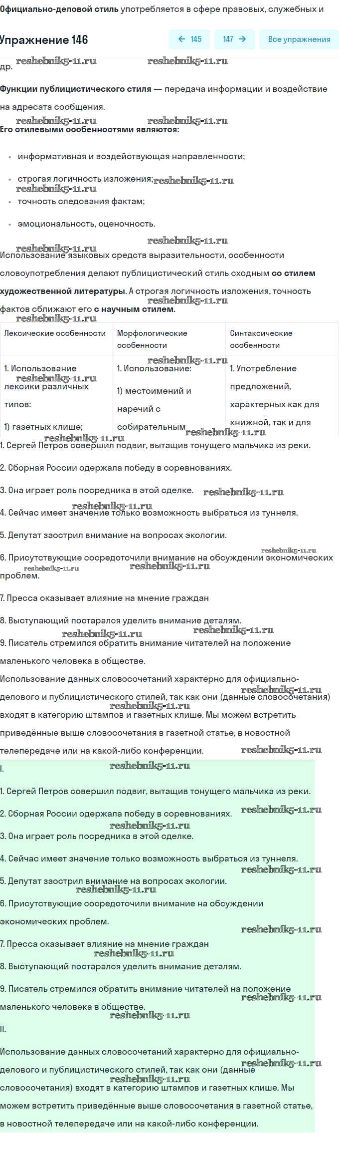 Готовая домашняя работа с ответами по Русскому языку за 8 класс Пичугов, Еремеева, Купалова, Леденева Практика Вертикаль Дрофа 2016 ФГОС - Упражнения 146