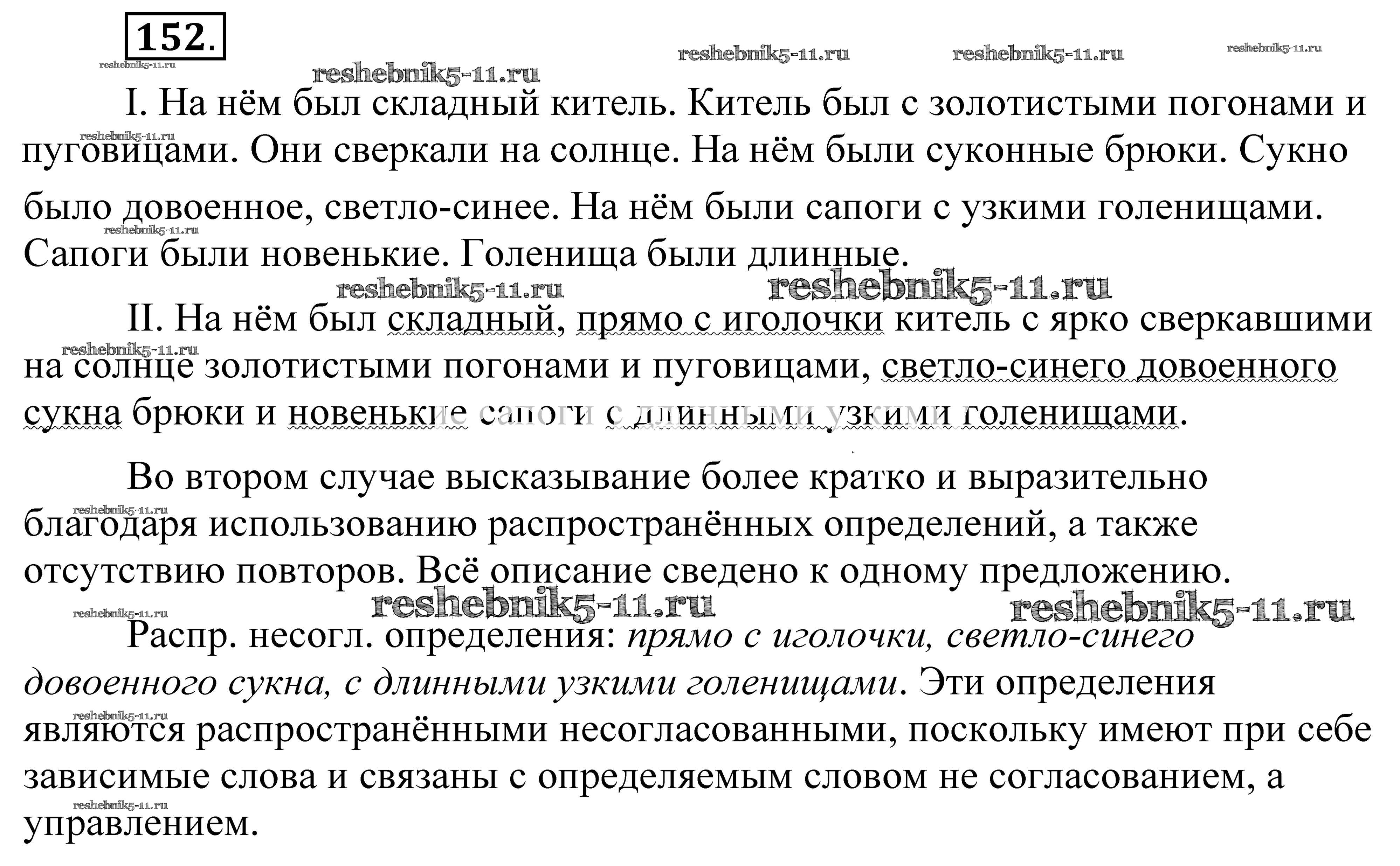 Готовая домашняя работа с ответами по Русскому языку за 8 класс Пичугов, Еремеева, Купалова, Леденева Практика Вертикаль Дрофа 2016 ФГОС - Упражнения 152
