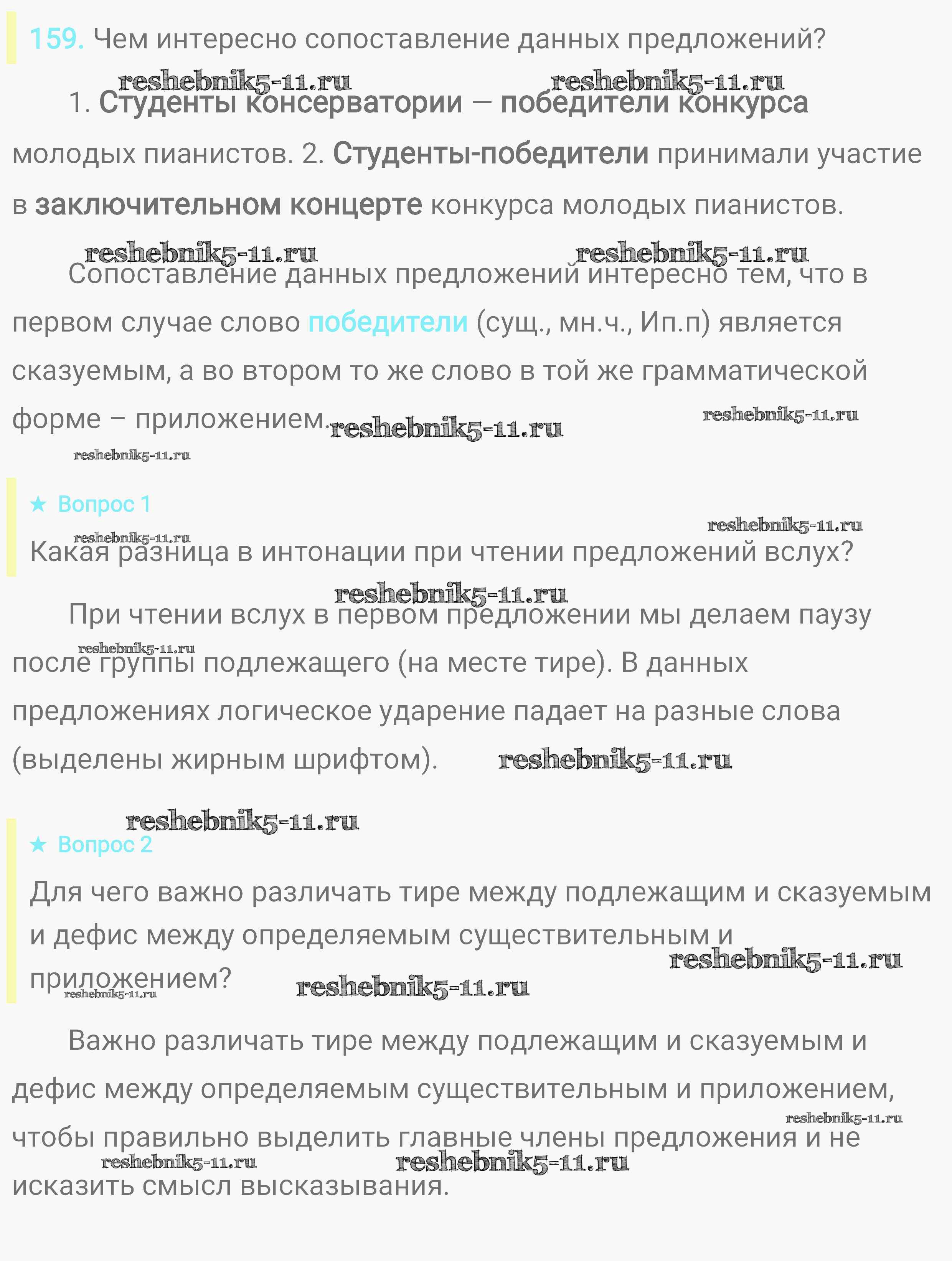 Готовая домашняя работа с ответами по Русскому языку за 8 класс Пичугов, Еремеева, Купалова, Леденева Практика Вертикаль Дрофа 2016 ФГОС - Упражнения 159